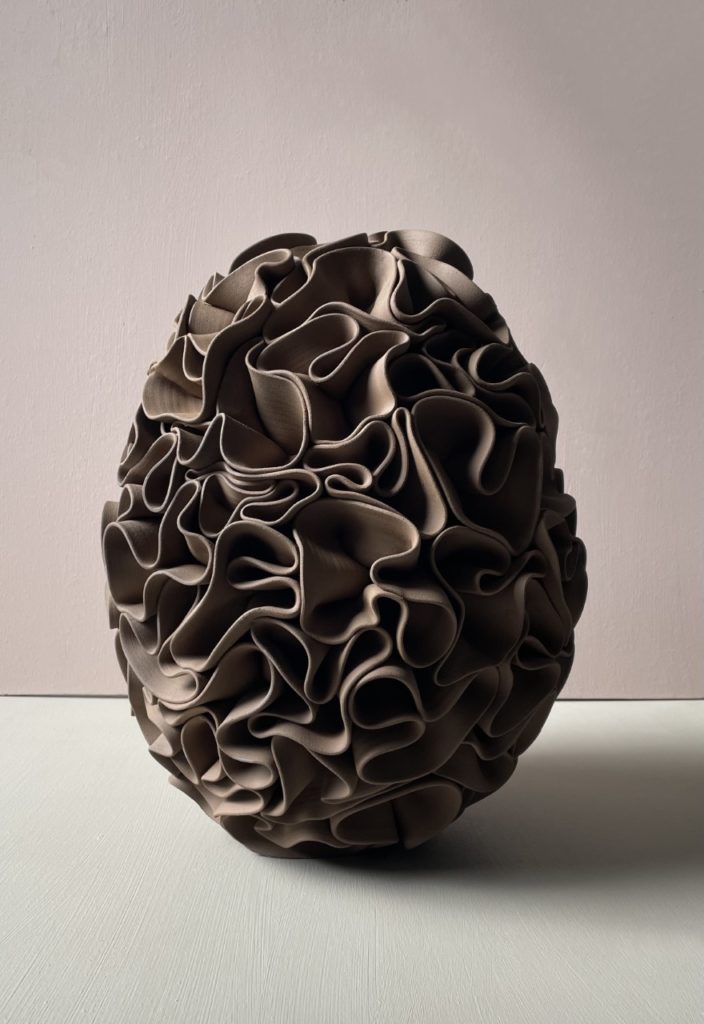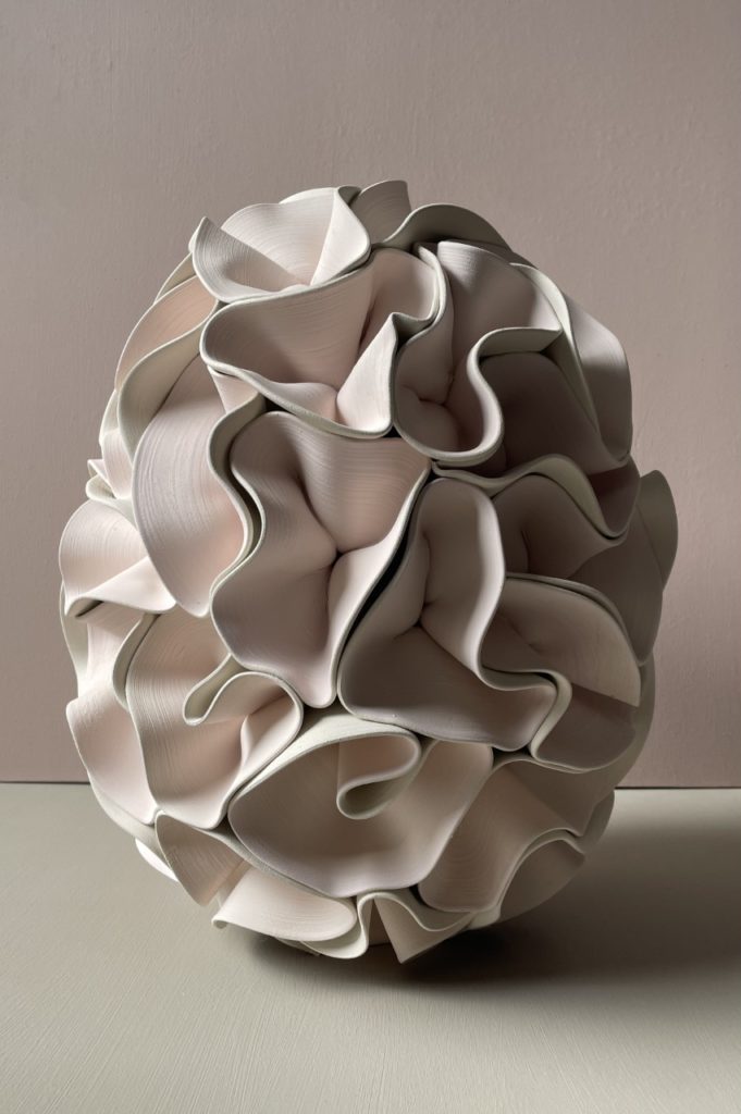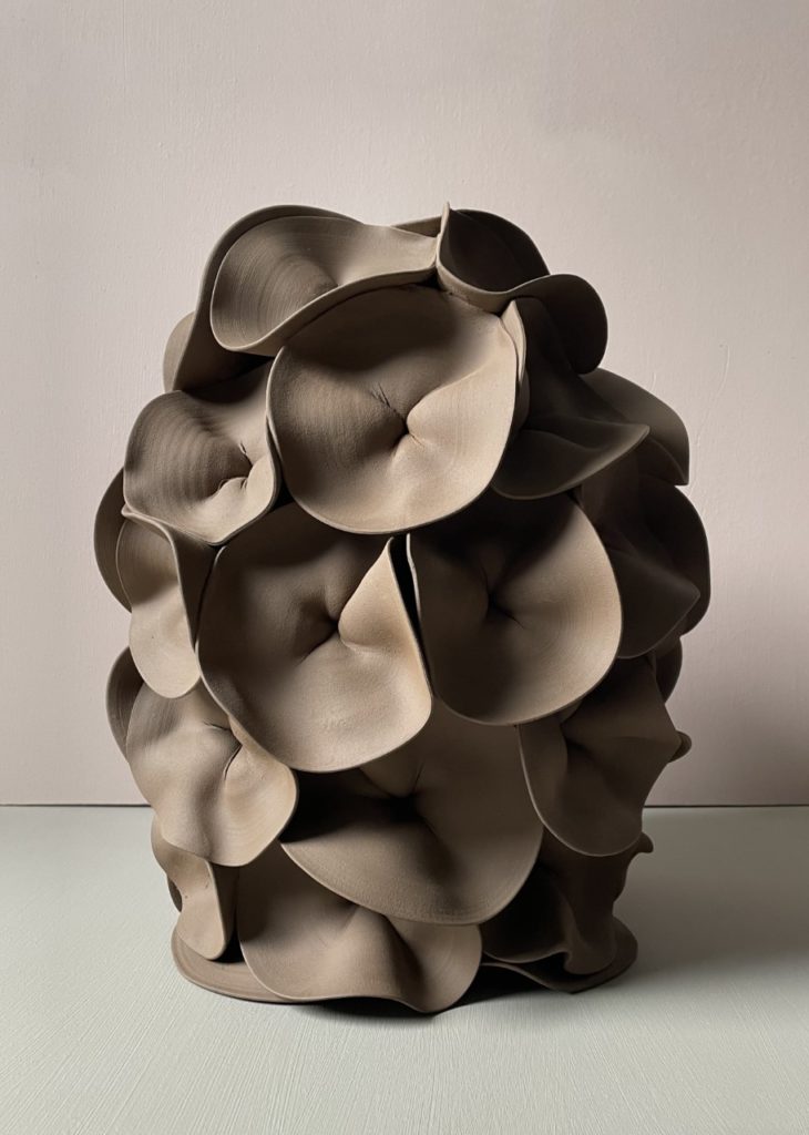 Alvina Jakobsson est une artiste céramiste suédoise de Stockholm et diplômée de Konstfack en 2017. Elle a son propre studio à Malmö. Elle fait de la sculpture céramique et construit des pièces monochromes en argile où le répétitif est significatif. Chaque pièce est unique.