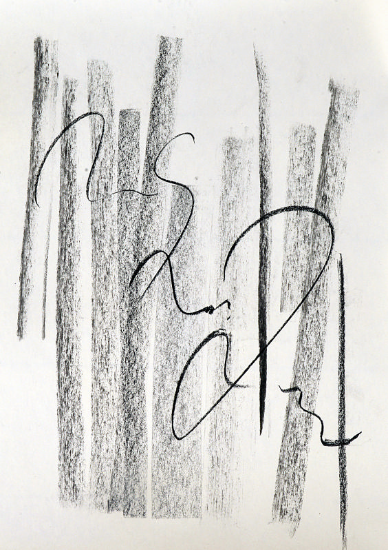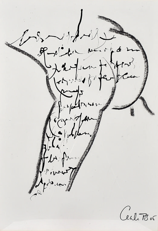 www.cecilepirziobiroli.be A layer of intuitive, abstract calligraphic symbols In addition to the traditional paint brushes standing on tables in the
