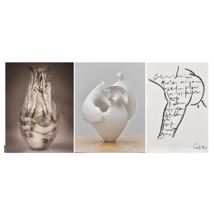 Emiliano Céliz – handhammered vases / Astrid Dahl – ceramic art / Cécile Pirzio-Biroli – calligraphies imaginaires